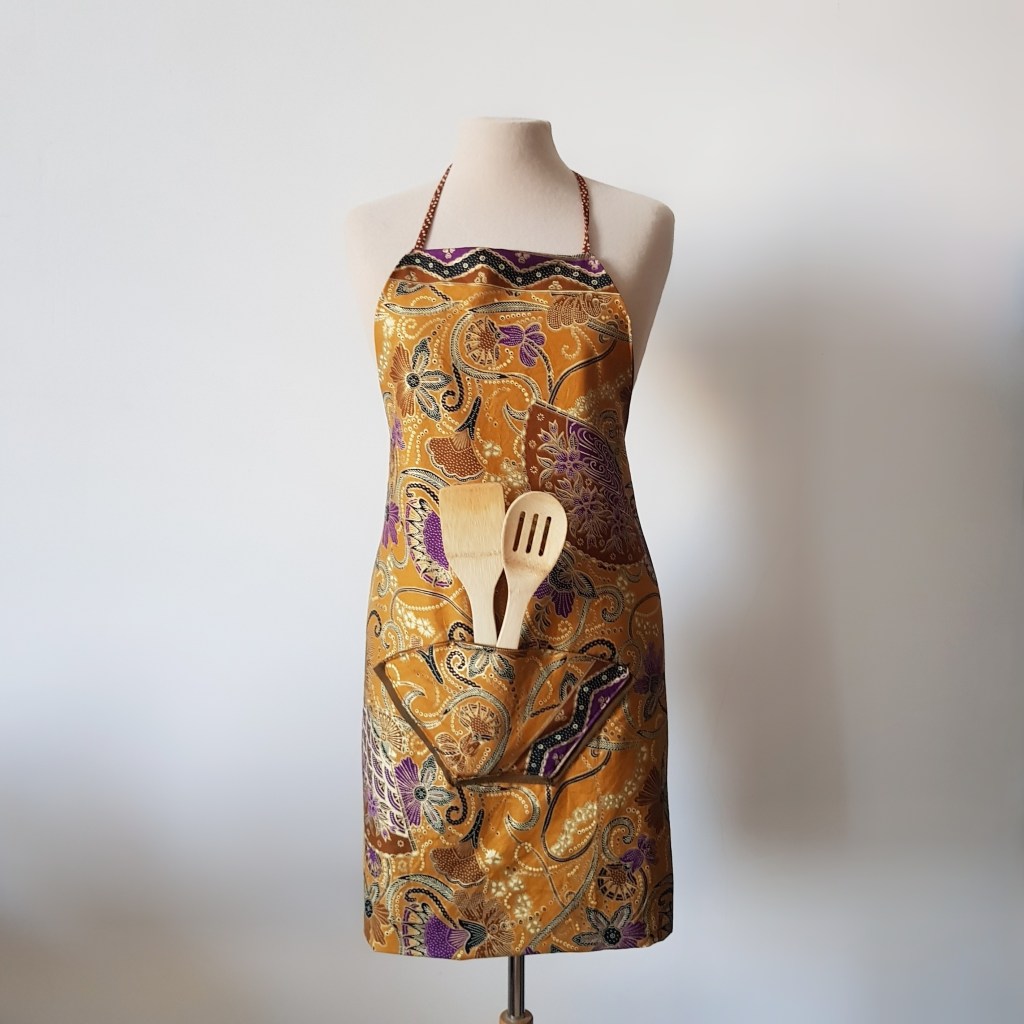 Gisteren kreeg ik een prachtige stof van mijn ouders om er iets leuks van te maken. De kleuren in de batik matchen bij mijn interieur, dus ik was op slag verliefd. Ik besloot om er een keukenschort van te maken.